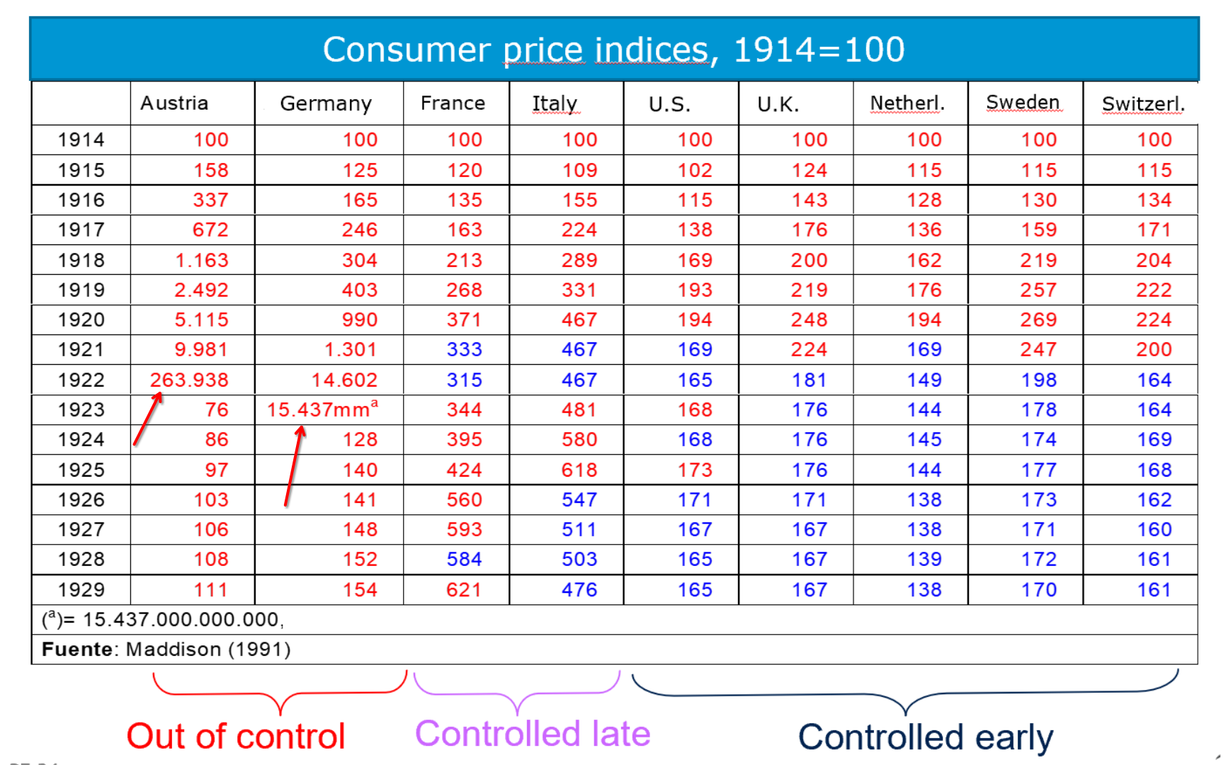 In Germany, there were notes of 200,000,000,000 mark in circulation that were not enough to pay a taxi; in the end, a loaf of bread cost 105,000,000,000 and a liter of milk 26,000,000,000 mark.