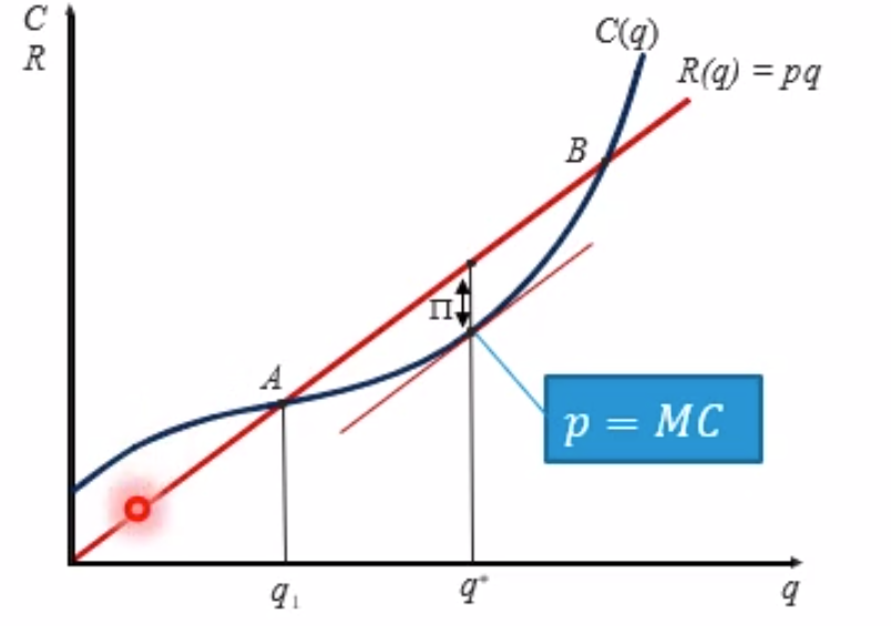 - red area â loss of producing more or less than optimal quantity