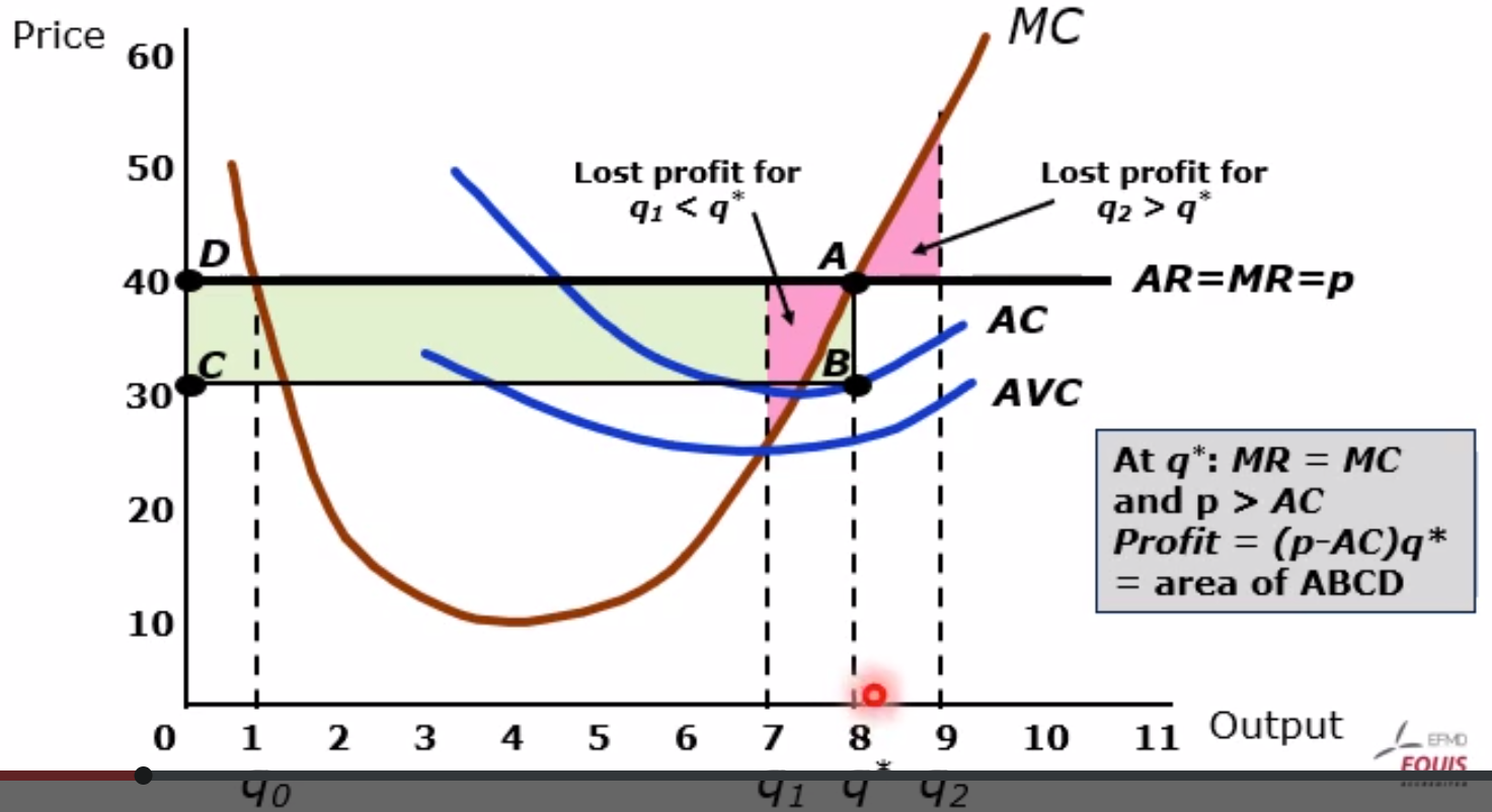 - Average Variable Cost is lower limit of price, otherwise shutting down