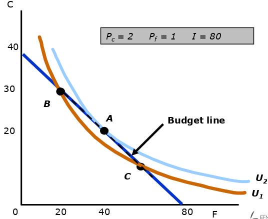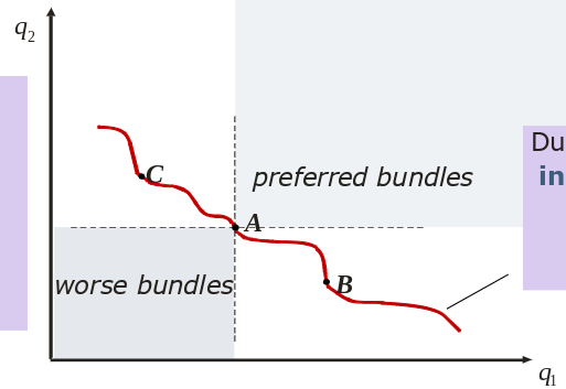 - the region between indifference and budget curve yield higher utility and are obtainable