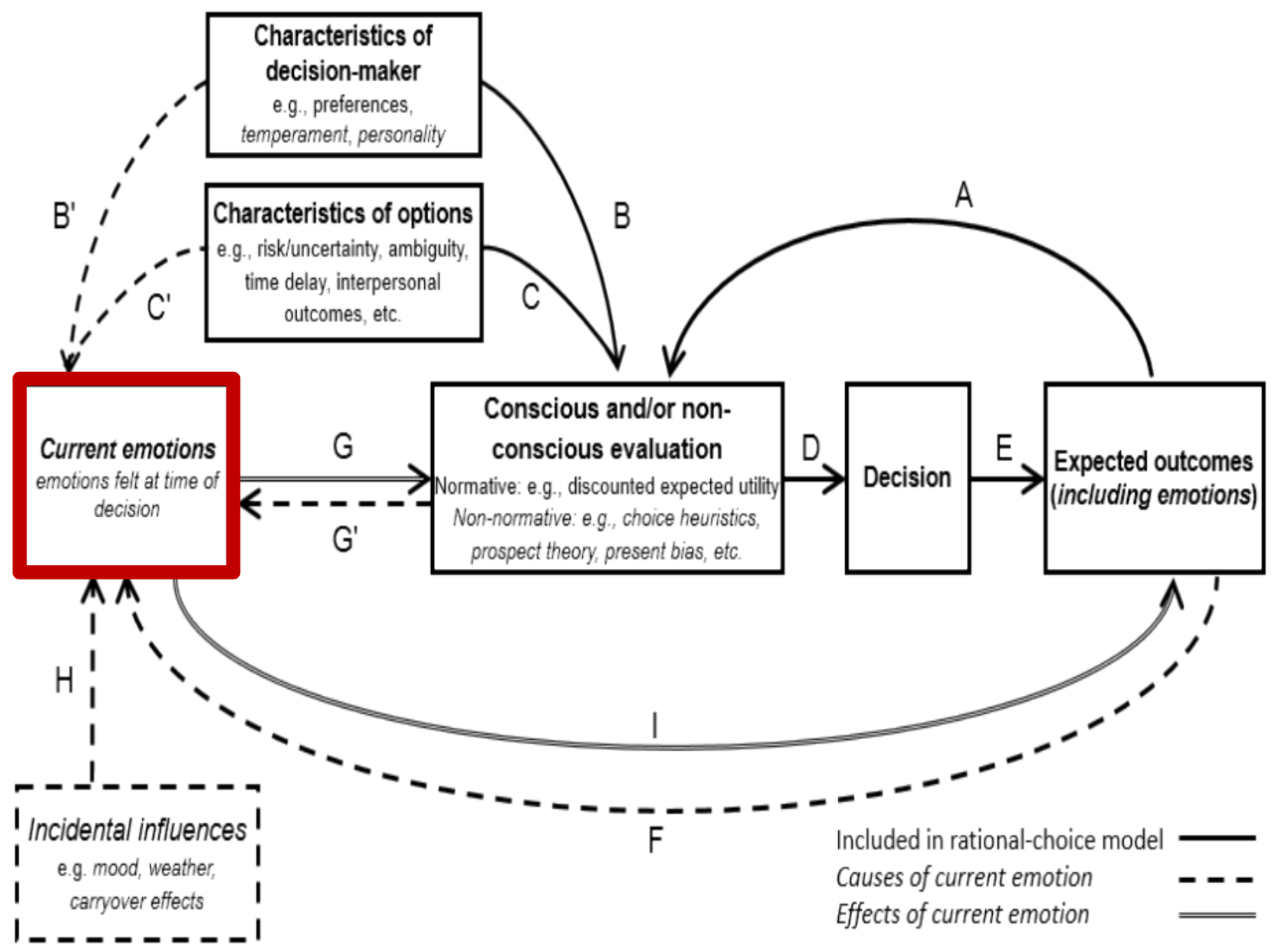 - Incidental emotion as bias. Spillovers (Han et al, 2007, Keltner & Lerner 2010)