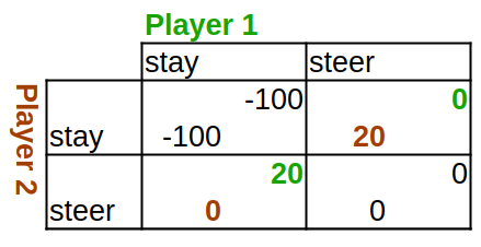 player is now unable to steer away such that the other player is forced to steer to avoid certain destruction