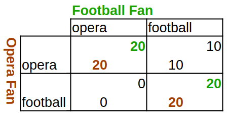 one can think of colluding to always go to either venue together (both opera or both football) which will leave one of the players with a higher payoff
